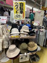 4月からの自転車への交通反則通告制度でヘルメット着用への意識が高まっています。現在は努力義務であり、罰則はないですが「被りましょう」ということで着用される方が増えているようです。カマニでは各種の自転車ヘルメットを取り揃え。中でも一見帽子の帽子型ヘルメットを種類豊富に揃えております。安全性能とデザイン性を両立し、紫外線対策にもなります。ただいま、入り口レジ前と家庭用品自転車用品コーナーで展開中です。